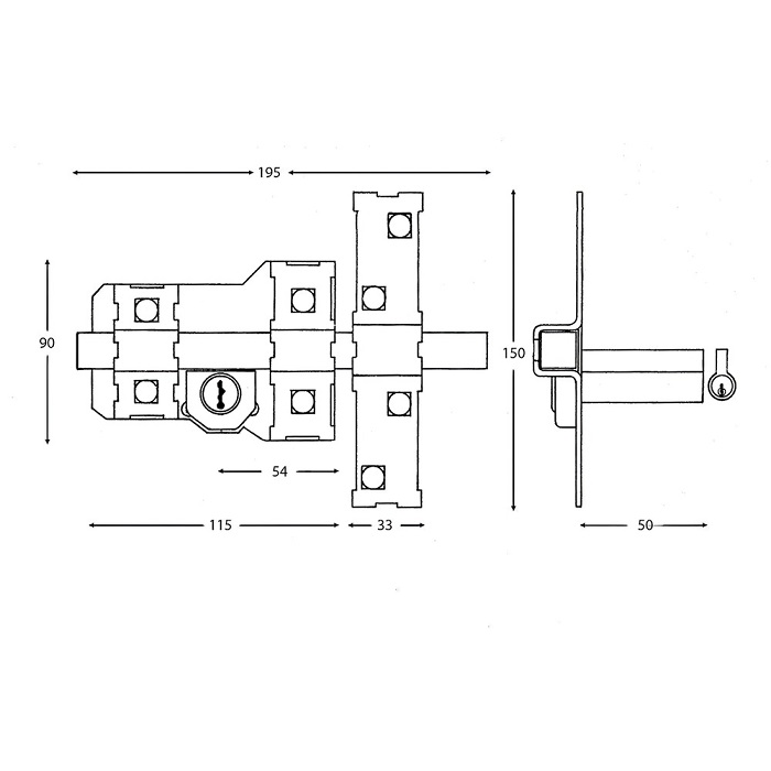 FICHA TÉCNICACerrojo Fac 302-l/115-p/izquierda.- Sistema "L".- Se acciona interior y exteriormente con llave, quedando siempre la barra fija.- Acabado pintado y niquelado.- Barra de acero calibrado de 18 mm.- Placa de acero de 2 mm.- Cerradero en acero de 3 mm.- Cilindro de latón de 50 mm. de longitud.