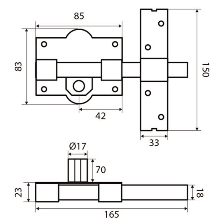 FICHA TÉCNICACerrojo Fac 301-l/ 80-n bombillo 70.- Sistema "L".- Se acciona interior y exteriormente con llave, quedando siempre la barra fija.- Acabado niquelado.- Barra de acero calibrado de 18 mm.- Placa en acero de 2 mm.- Cerradero en acero de 3 mm.- Cilindro de latón de 70 mm. de longitud.