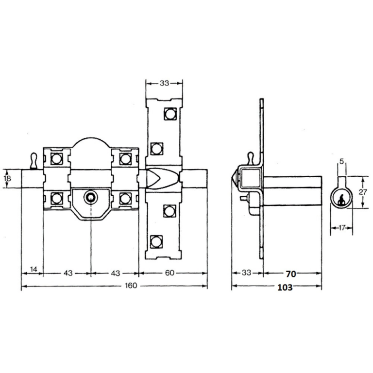 CERROJO FAC 305R/80 NIQUEL DERECHA. Bom.70