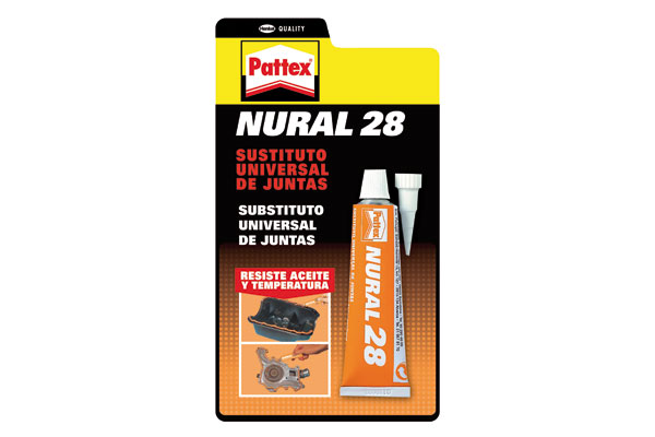 Adhesivo a base de silicona. Su fórmula ha sido desarrollada para lograr una buena resistencia al aceite y una adecuada elasticidad.Pattex Nural 28 es un sustituto de juntas especialmente formulado para automoción e industria.Reemplaza las juntas de corcho, goma y fieltro.Ideal para juntas de motor, tapa de balancines y caja de cambios.Rellena poros y rayaduras.