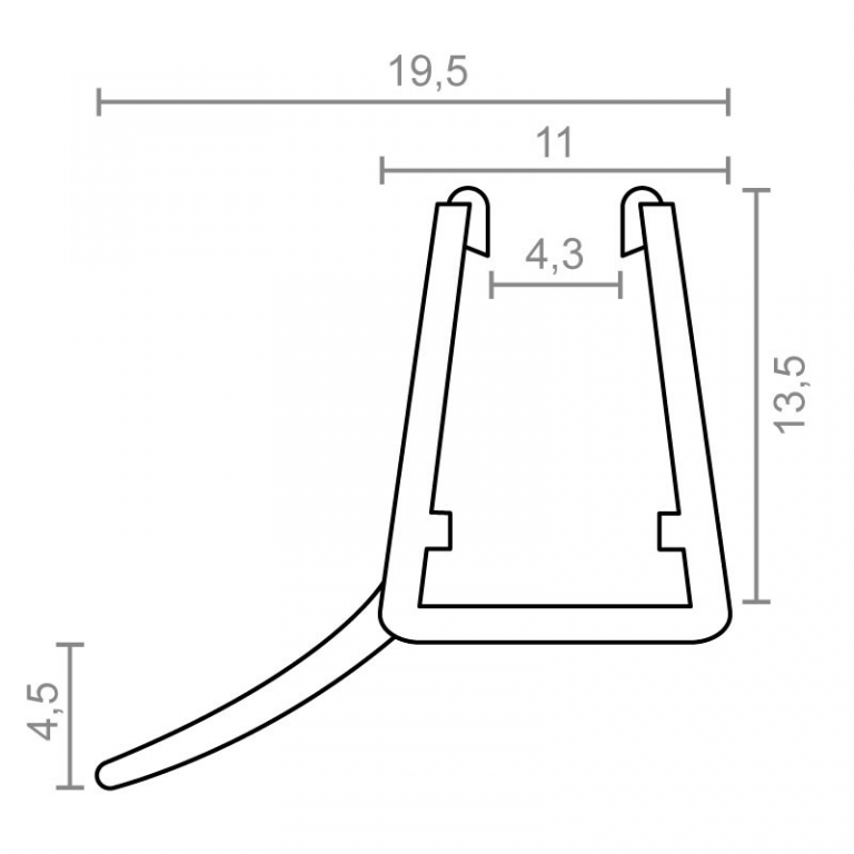 PERFIL EN PVC PARA MAMPARA CON VIERTEAGUA CENTRAL. MEDIDA 2 MTS DE LARGO. VALIDO PARA CRISTAL DE 6-8 MM. ACABADO TRANSPARENTE.