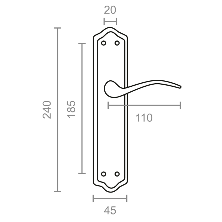 JUEGO DE MANILLA 1777.PARA PUERTAS DE PASO DE CASA O LOCAL.MEDIDA PLACA 240x45mm.MEDIDA MANETA 110mm.MATERIAL PLACA ACERO Y MANETA DE ALUMINIO.ACABADO LATONADO.