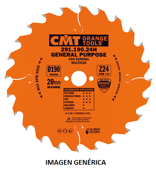 Diámetro exterior: 180mm.Diámetro orifício: 30mm.Nº. dientes: 24Para cortar madera dura, blanda, contrachapada y OSBCortes a favor y en contra de veta